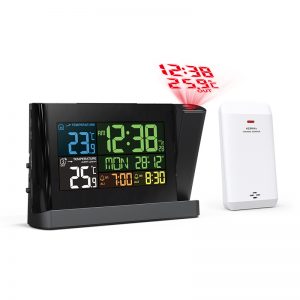 • Project time, in/outdoor temperature (°C/°F) and weather forecast on ceiling or wall